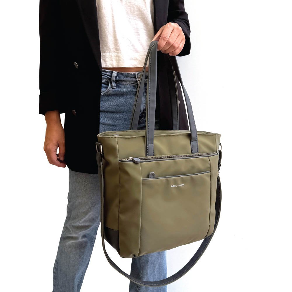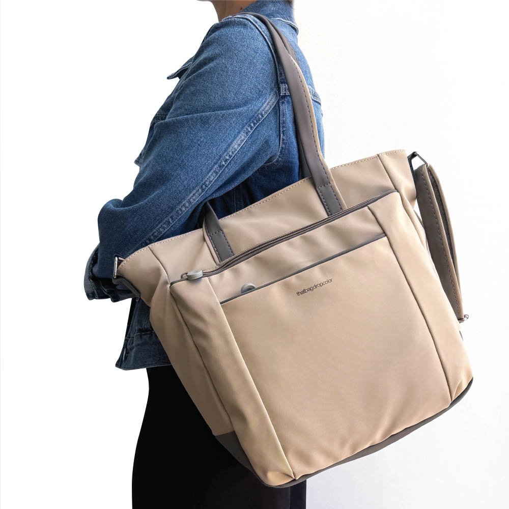 Bolsita Drop con doble asa de hombro y correa regulable.