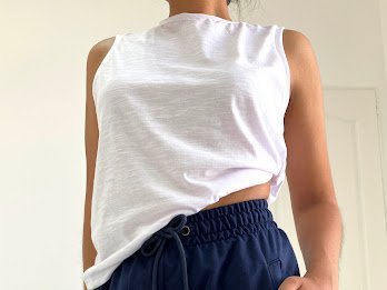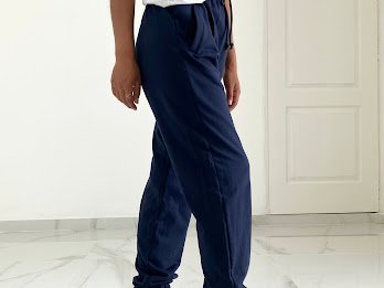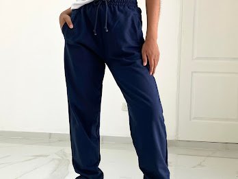 Jogger tiro alto + elástico en la cintura + cordón ajustable +bolsillos delanteros +puño con elástico.