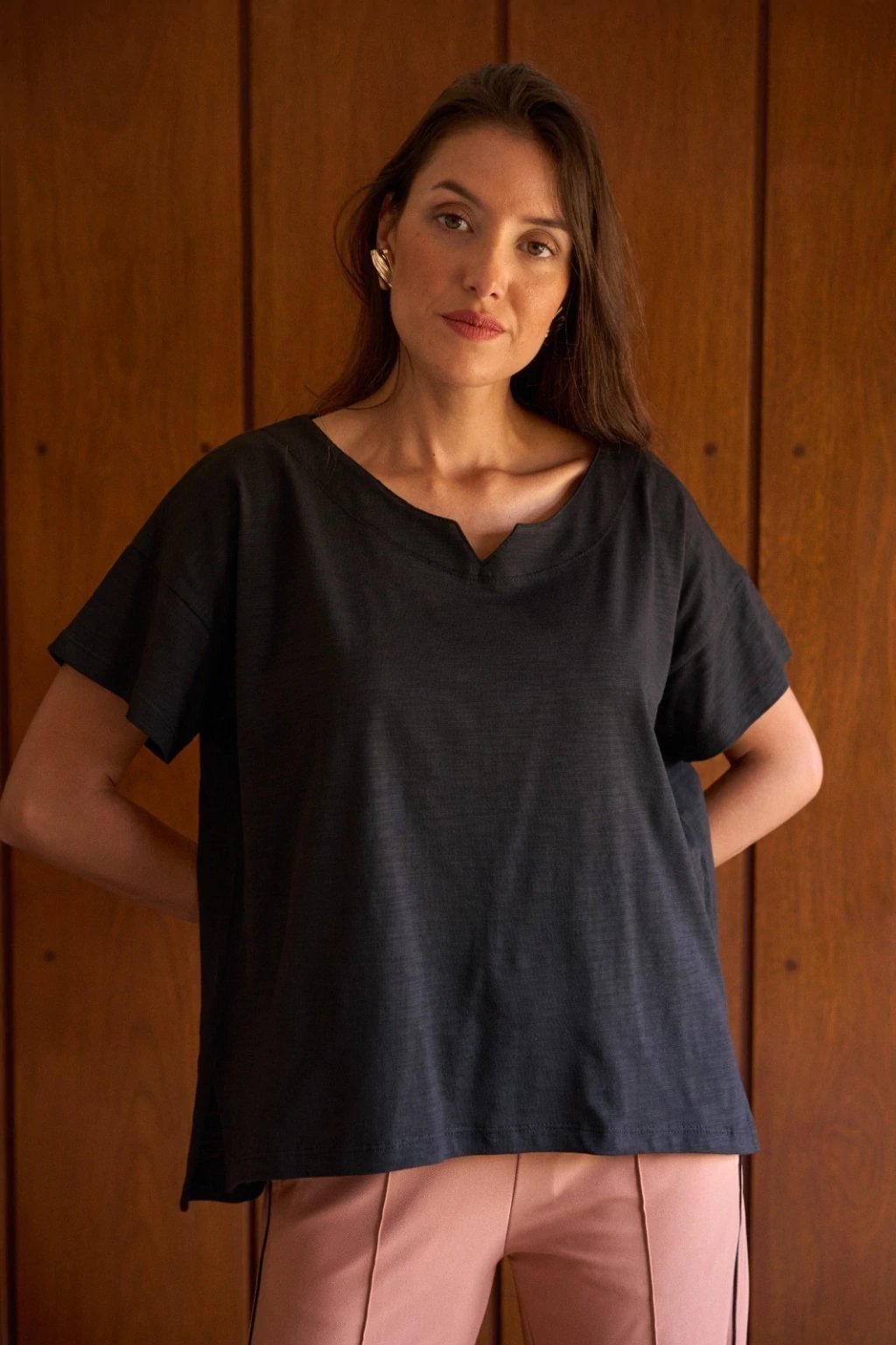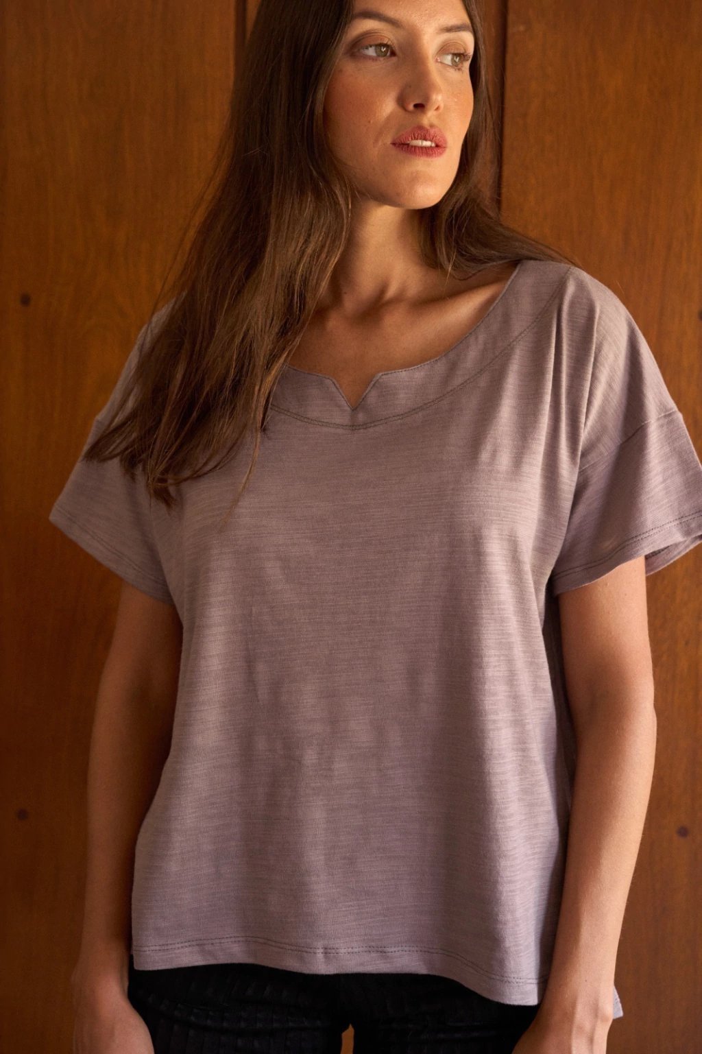 Remeron ancho con mangas amplias y tajos laterales. Presenta terminación irregular (al igual que el remerón LAVANDA) y cuello con vista con terminación de bordador. Material: flamé 100% algodón.